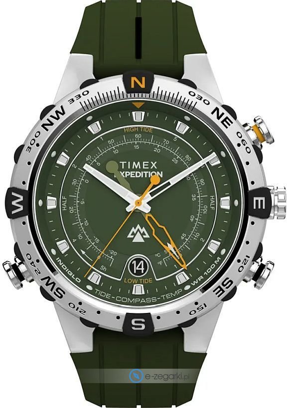 Zegarek TW2Y14400 wyposażony jest w mechanizm zasilany klasyczną baterią kwarcową. Pasek zielonego koloru zrobiony jest z wysokiej jakości tworzywa sztucznego.