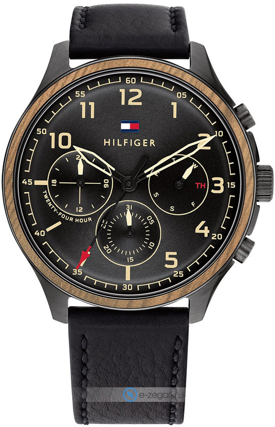 Zegarek męski 1791854 marki Tommy Hilfiger należy do serii Tommy Hilfiger Asher. Niebanalną budowę czasomierza osiągnięto z pomocą tarczy w kolorze czarnym. Zegarek ten pokazuje godzinę w formacie analogowym dzięki czemu odczyt jest intuicyjny. Koperta w odcieniach koloru czarnego szeroka jest na 45 mm oraz ma grubość 13 mm - wyróżnia się okrągłym kształtem.