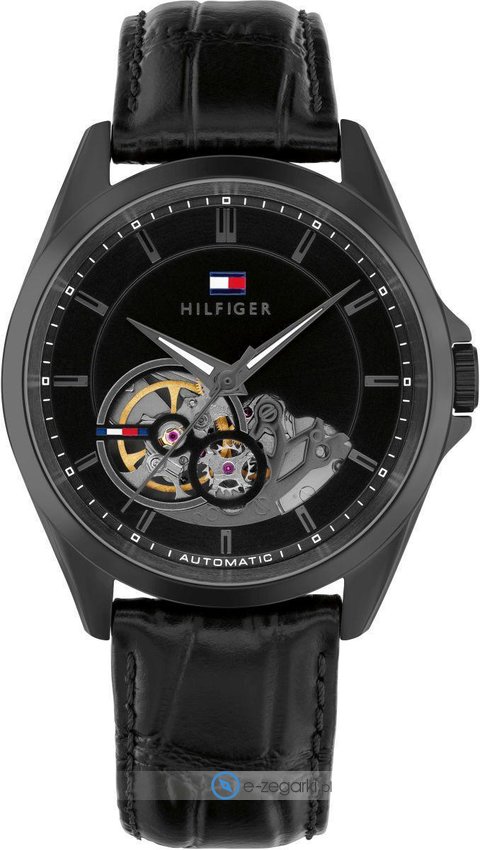 Zegarek męski 1710714 należy do rodziny Tommy Hilfiger Baker Automatic marki Tommy Hilfiger. Cyferblat zegarka jest w kolorze czarnym. Koperta jest w kolorze czarnym szeroka jest na 39 mm - ma okrągły kształt.