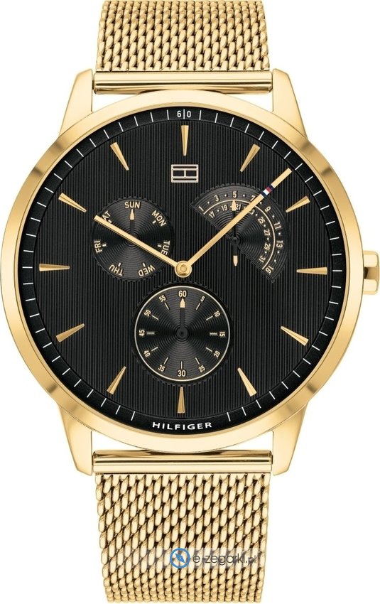 Zegarek 1710386 marki Tommy Hilfiger to gustowny zegarek naręczny męski, który posiada pomysłowe rozwiązania oraz funkcje. Model ten występuje w kolekcji Tommy Hilfiger Brad. Niestereotypowy wygląd czasomierza uzyskano dzięki tarczy w kolorze czarnym. Koperta jest w kolorze złotym szeroka jest na 44 mm oraz ma grubość 10 mm - w kształcie okrągłym.