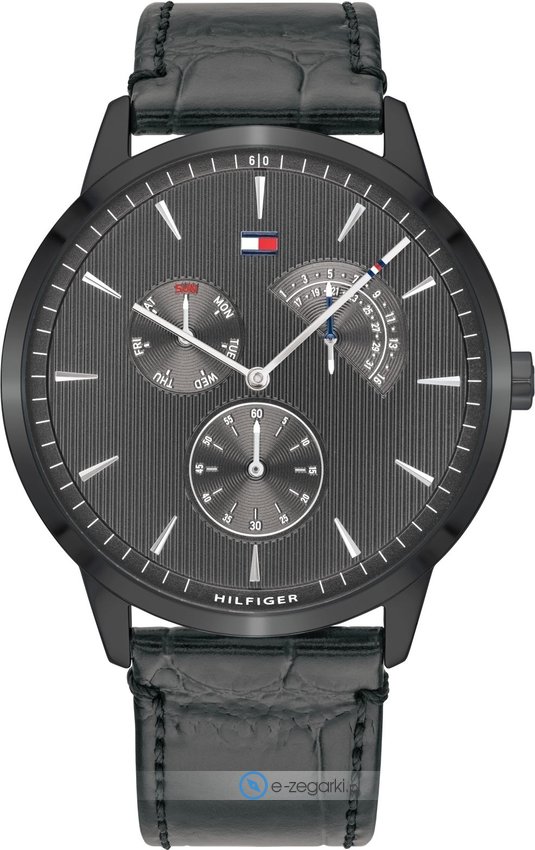 Zegarek męski 1710388 marki Tommy Hilfiger to stylowe połączenie funkcjonalności a także ciekawego designu. Model ten występuje w kolekcji Tommy Hilfiger Brad. Charakterystyczną stylistykę zegarka osiągnięto z pomocą tarczy w kolorze czarnym. Koperta jest w kolorze czarnym szeroka jest na 44 mm oraz ma grubość 10 mm - w kształcie okrągłym.