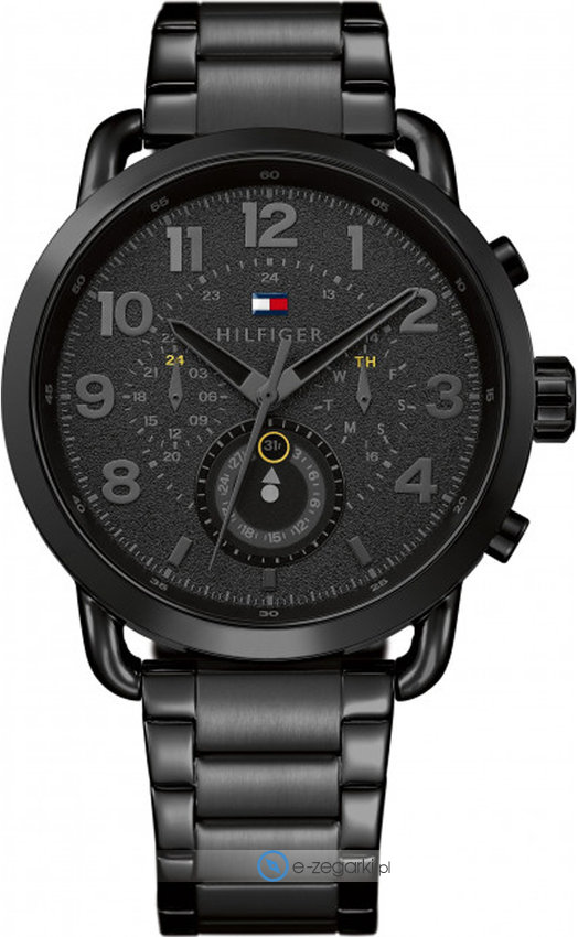 Model 1791423 marki Tommy Hilfiger to gustowny zegarek naręczny męski, który wyposażono w pomysłowe rozwiązania i funkcje. Charakteru dodaje wysokiej klasy cyferblat w kolorze czarnym. Koperta szeroka jest na 46 mm - ma okrągły kształt.
