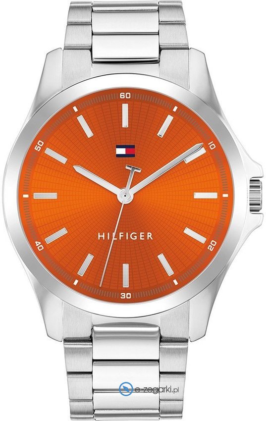 Model męski 1710678 marki Tommy Hilfiger z kolekcji Tommy Hilfiger Bruce. Niestereotypowy wygląd zegarka uzyskano także dzięki tarczy w kolorze pomarańczowym. Godzina przedstawiona jest w sposób analogowy co bez trudu pozwala ją odczytać. Koperta jest w kolorze stalowym szeroka jest na 43 mm - cechuje się okrągłym kształtem.