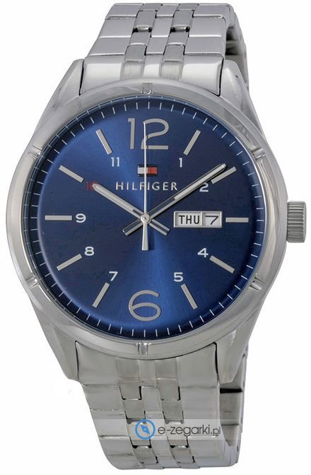Model męski 1791061 należy do serii Tommy Hilfiger Charlie marki Tommy Hilfiger. Cyferblat zegarka w kolorze niebieskim. Koperta w barwach koloru stalowego szeroka jest na 44 mm oraz ma grubość 10 mm - charakteryzuje się okrągłym kształtem.