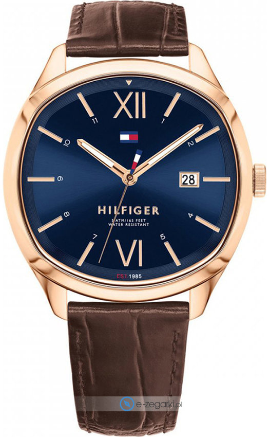Tommy Hilfiger 1710366 - męski zegarek kierowany dla osób szukających zegarka z rodziny Tommy Hilfiger Clark. Wysokiej jakości tarczę zegarka ozdobiono granatowym kolorem. Zegarek ten prezentuje aktualny czas w formacie analogowym dzięki czemu odczyt jest bardzo łatwy. Koperta w barwach koloru różowo złotego szeroka jest na 44 mm oraz ma grubość 10 mm - posiada owalny kształt.