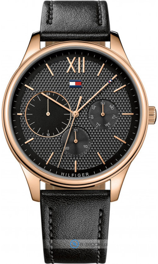 Zegarek męski 1791419 marki Tommy Hilfiger to idealne połączenie funkcjonalności i modnego designu. Stylu dodaje wysokiej klasy tarcza w kolorze czarnym. Koperta szeroka jest na 44 mm oraz ma grubość 10 mm - ma okrągły kształt.