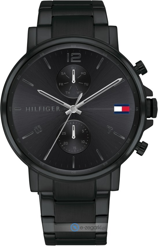 Męski zegarek 1710414 z serii Tommy Hilfiger Daniel marki Tommy Hilfiger to połączenie smaku i nowatorskich funkcji. Atrakcyjny wygląd czasomierza uzyskano również dzięki tarczy w kolorze czarnym. Zegarek ten prezentuje aktualny czas w formacie analogowym dzięki temu odczyt jest bardzo łatwy. Koperta w odcieniach koloru czarnego szeroka jest na 44 mm oraz ma grubość 10 mm - w kształcie okrągłym.