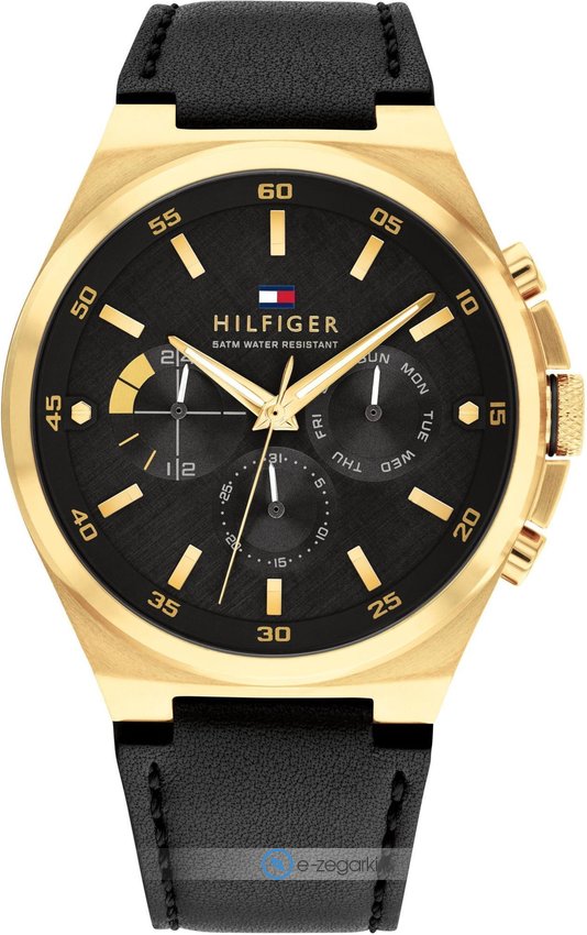 Zegarek męski 1792086 marki Tommy Hilfiger należy do serii Tommy Hilfiger Dexter. Pokazana metodą analogową bieżąca godzina jest czytelna i szybka do sprawdzenia. Koperta została ozdobiona kolorem złotym szeroka jest na 46 mm - w kształcie okrągłym.