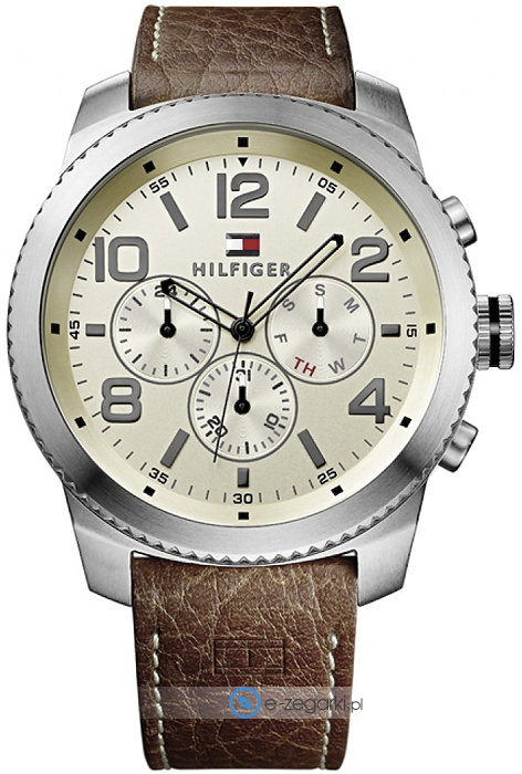 Męski zegarek 1791107 z kolekcji Tommy Hilfiger Graham marki Tommy Hilfiger to połączenie estetyki oraz pomysłowych funkcji. Ciekawą budowę czasomierza osiągnięto z pomocą tarczy w kolorze beżowym. Koperta została ozdobiona kolorem stalowym szeroka jest na 49 mm oraz ma grubość 12 mm - w kształcie okrągłym.