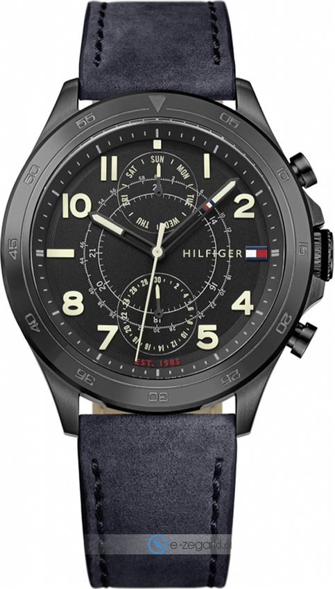 Model męski 1791345 marki Tommy Hilfiger należy do kolekcji Tommy Hilfiger Hudson. Charakter zapewnia wysokiej jakości tarcza w kolorze czarnym. Zegarek ten prezentuje godzinę w formacie analogowym dzięki temu odczyt jest intuicyjny. Koperta jest w kolorze czarnym szeroka jest na 44 mm oraz ma grubość 12 mm - charakteryzuje się okrągłym kształtem.