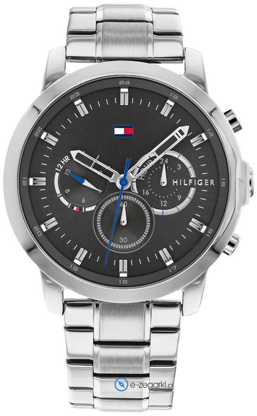 Męski zegarek 1791794 z serii Tommy Hilfiger Jameson marki Tommy Hilfiger to połączenie stylu i oryginalnych mechanizmów. Tarcza zegarka jest w kolorze czarnym. Zegarek ten prezentuje godzinę w formacie analogowym dzięki czemu odczyt jest bardzo łatwy. Koperta jest w kolorze stalowym szeroka jest na 46 mm oraz ma grubość 10 mm - ma okrągły kształt.
