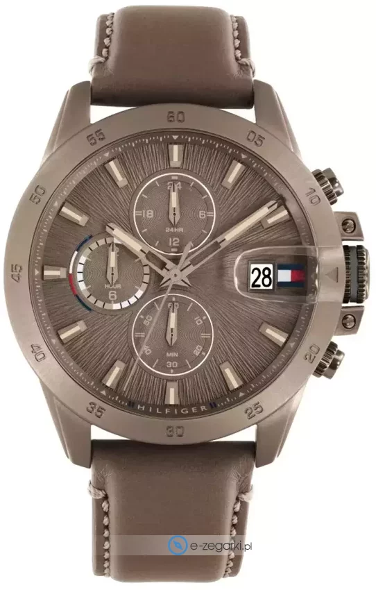 Zegarek męski 1792196 zalicza się do rodziny Tommy Hilfiger Jameson marki Tommy Hilfiger. Charakterystyczny wygląd czasomierza osiągnięto m.in. poprzez tarczę w kolorze brązowym. Godzina prezentowana jest w sposób analogowy co bez trudu pozwala ją odczytać. Koperta szeroka jest na 43 mm oraz ma grubość 11 mm - ma okrągły kształt.