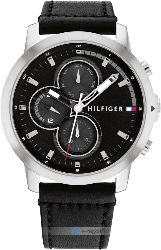 Tommy Hilfiger 1792052 - męski zegarek przeznaczony dla osób szukających zegarka z kolekcji Tommy Hilfiger Jameson Le. Wysokiej trwałości cyferblat zegarka ozdobiono czarnym kolorem. Godzina przedstawiona jest w sposób analogowy co bez trudu pozwala ją odczytać. Koperta w barwach koloru stalowego szeroka jest na 46 mm oraz ma grubość 10 mm - w kształcie okrągłym.