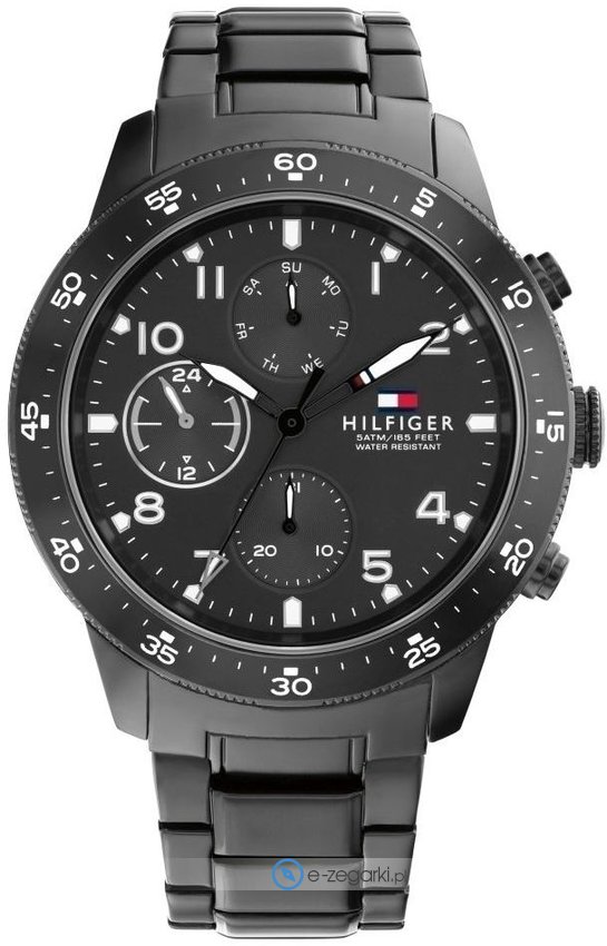Zegarek męski 1791951 marki Tommy Hilfiger to dobre połączenie funkcjonalności oraz ciekawego wzornictwa. Model ten pochodzi z serii Tommy Hilfiger Jimmy. Atrakcyjny wygląd czasomierza osiągnięto m.in. poprzez cyferblat w kolorze czarnym. Zegarek ten pokazuje godzinę w formacie analogowym dzięki temu odczyt jest intuicyjny. Koperta jest w kolorze czarnym szeroka jest na 44 mm oraz ma grubość 11 mm - cechuje się okrągłym kształtem.