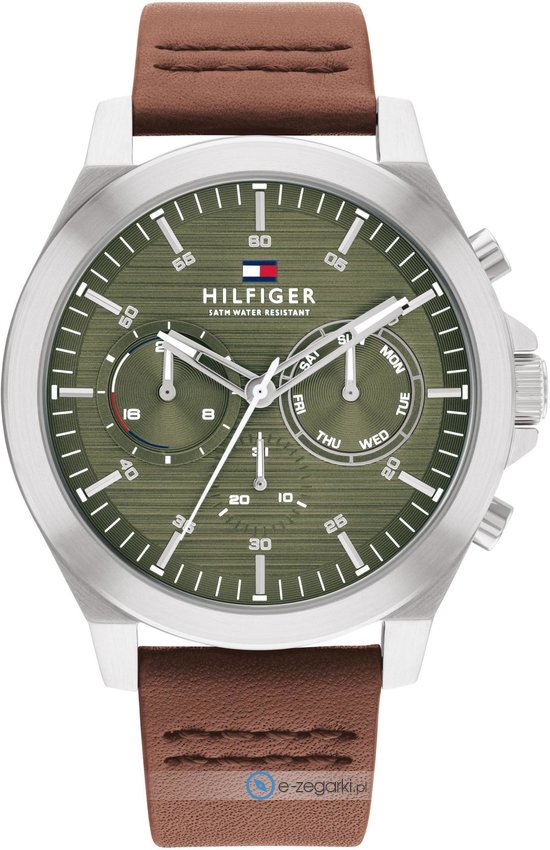 Zegarek męski 1710522 marki Tommy Hilfiger to stylowe połączenie funkcjonalności i ciekawego wzornictwa. Model ten należy do kolekcji Tommy Hilfiger Lance. Niestereotypowy wygląd czasomierza uzyskano także dzięki tarczy w kolorze zielonym. Zegarek ten pokazuje aktualny czas w formacie analogowym dzięki temu odczyt jest bardzo łatwy. Koperta została ozdobiona kolorem stalowym szeroka jest na 46 mm - wyróżnia się okrągłym kształtem.