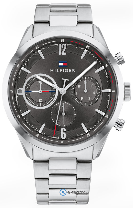 Męski zegarek 1791943 z serii Tommy Hilfiger Matthew marki Tommy Hilfiger to połączenie stylu oraz nieprzeciętnych funkcji. Stylu nadaje wysokiej jakości tarcza w kolorze czarnym. Aktualna godzina zaprezentowana jest w sposób analogowy co bez trudu pozwala ją odczytać. Koperta jest w kolorze stalowym szeroka jest na 44 mm oraz ma grubość 11 mm - w kształcie okrągłym.