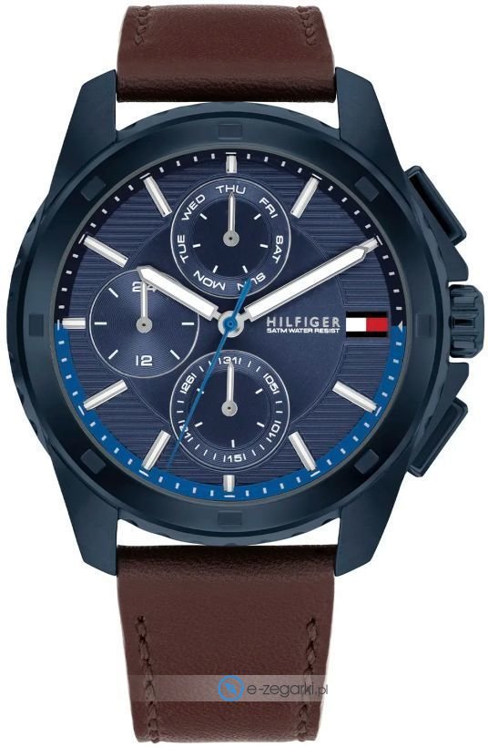 Zegarek męski 1710632 marki Tommy Hilfiger to stylowe połączenie funkcjonalności a także modnego wzornictwa. Model ten występuje w kolekcji Tommy Hilfiger Walker. Ciekawą konstrukcję czasomierza osiągnięto dzięki tarczy w kolorze granatowym. Pokazana metodą analogową bieżąca godzina jest czytelna i łatwa do sprawdzenia. Koperta w barwach koloru niebieskiego szeroka jest na 44 mm oraz ma grubość 12 mm - posiada okrągły kształt.