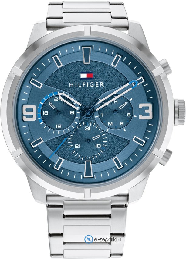 Zegarek męski 1792077 zalicza się do rodziny Tommy Hilfiger Wild marki Tommy Hilfiger. Charakter zapewnia wysokiej jakości cyferblat w kolorze niebieskim. Godzina pokazywana jest w sposób analogowy co intuicyjnie pozwala ją odczytać. Koperta została ozdobiona kolorem stalowym szeroka jest na 50 mm - wyróżnia się okrągłym kształtem.