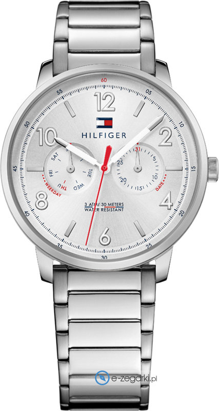 Zegarek 1791355 marki Tommy Hilfiger to elegancki zegarek naręczny męski, który wyposażono w ciekawe rozwiązania i funkcje. Model ten pochodzi z serii Tommy Hilfiger Will. Wysokiej trwałości cyferblat zegarka pokryto szarym kolorem. Koperta jest pokryta kolorem stalowym szeroka jest na 40 mm oraz ma grubość 9 mm - w kształcie okrągłym.