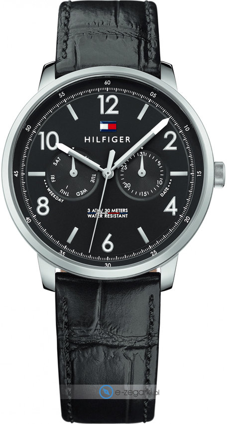 Zegarek męski 1791356 marki Tommy Hilfiger to dobre połączenie funkcjonalności a także ciekawego wzornictwa. Model ten pochodzi z kolekcji Will. Cyferblat zegarka w kolorze czarnym. Koperta została pokryta kolorem stalowym szeroka jest na 40 mm oraz ma grubość 12 mm - posiada okrągły kształt.