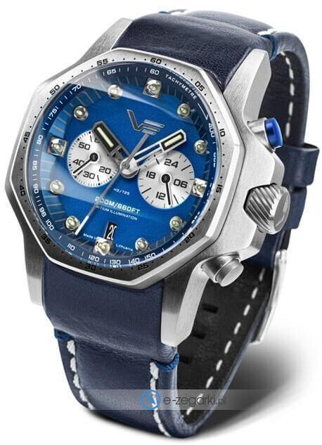 Zasilanie zegarka VK64-640A700 to standardowa bateria kwarcowa. Pasek niebieskiego koloru wykonany jest z wysokiej klasy skóry zapewniającej trwałość i wygodę użytkowania.