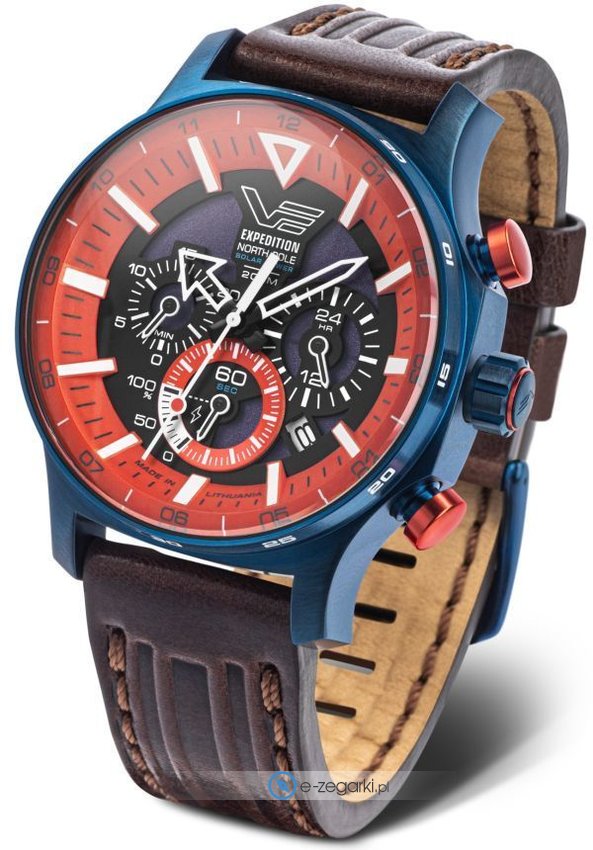 Vostok Europe VR42-595D734 - męski zegarek kierowany dla osób szukających zegarka z rodziny Vostok Europe Expedition North Pole. Wysokiej jakości cyferblat zegarka pokryto czerwonym kolorem. Aktualna godzina przedstawiona jest w sposób analogowy co intuicyjnie pozwala ją odczytać. Koperta w barwach koloru niebieskiego szeroka jest na 47 mm oraz ma grubość 16 mm - w kształcie okrągłym.