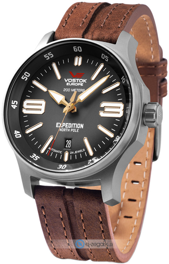 Model męski YN55-592A555 marki Vostok Europe z serii Vostok Europe Expedition North Pole. Tarcza zegarka jest w kolorze czarnym. Zegarek ten pokazuje aktualny czas w formacie analogowym dzięki temu odczyt jest intuicyjny. Koperta w barwach koloru srebrnego szeroka jest na 43 mm oraz ma grubość 15 mm - charakteryzuje się okrągłym kształtem.