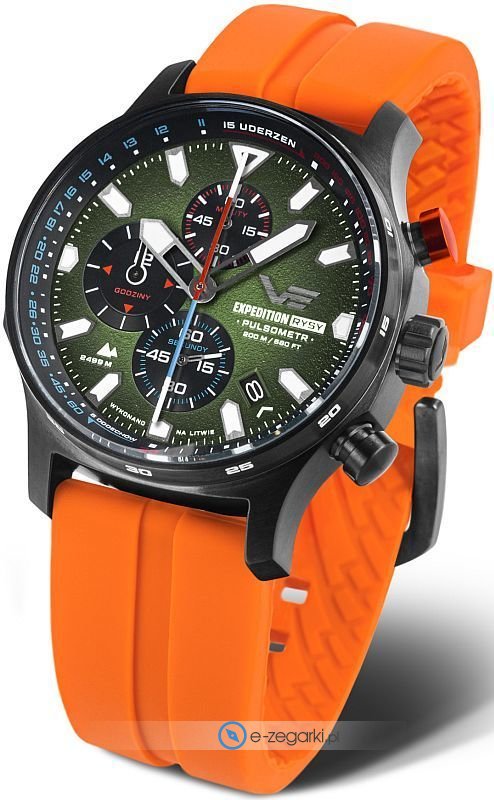 Zegarek VK67-592D499 Rysy posiada kwarcowy mechanizm zasilany normalną baterią. Pasek jest w kolorze pomarańczowym zrobiony jest z wysokiej jakości tworzywa sztucznego.