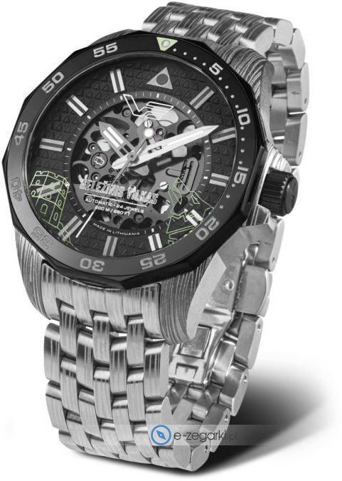 Zegarek męski NH72-225E764 Gelezinis Vilkas Iron Wolf marki Vostok Europe to dobra pozycja dla ludzi ceniących sobie dbałość o szczegóły oraz sprawne działanie mechanizmów. Niebanalny wygląd czasomierza osiągnięto m.in. poprzez cyferblat w kolorze czarnym. Aktualna godzina zaprezentowana jest w sposób analogowy co intuicyjnie pozwala ją odczytać. Koperta jest w kolorze srebrnym szeroka jest na 55 mm oraz ma grubość 16 mm - w kształcie okrągłym.