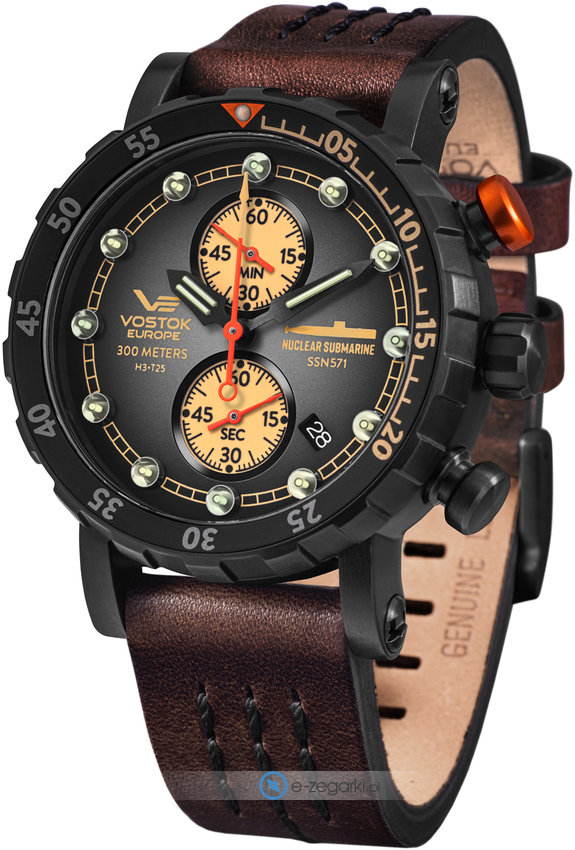 Model VK61-571C611 marki Vostok Europe to stylowy zegarek naręczny męski, który wyposażono w ciekawe rozwiązania oraz funkcje. Charakteru dodaje wysokiej jakości cyferblat w kolorze ciemnym. Zegarek ten pokazuje aktualny czas w formacie analogowym dzięki czemu odczyt jest bardzo łatwy. Koperta w barwach koloru czarnego szeroka jest na 45 mm oraz ma grubość 16 mm - posiada okrągły kształt.