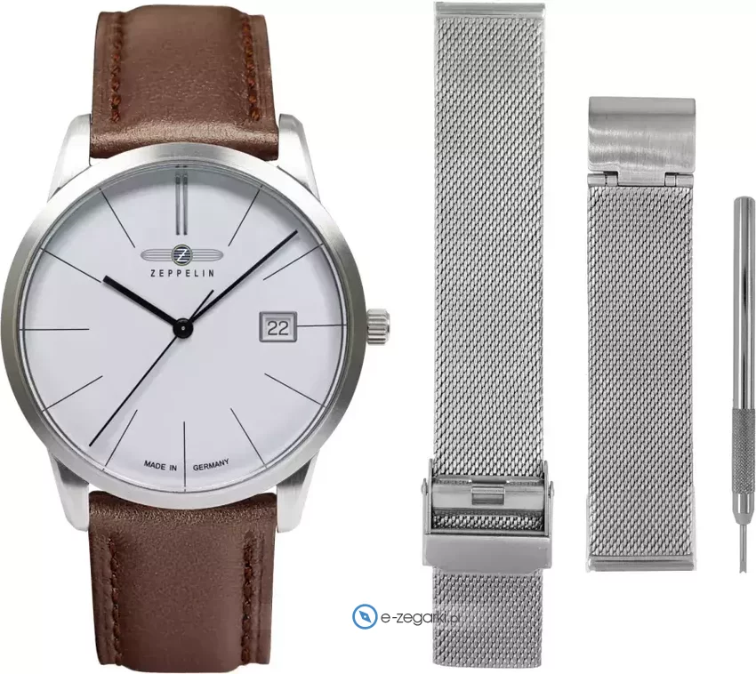 Męski zegarek Zeppelin 7342-1_BR_SET to zegarek, który dzięki swemu wzornictwu zawsze będzie prezentował się dobrze. Styl zapewnia wysokiej jakości cyferblat w kolorze białym. Zegarek ten pokazuje aktualny czas w formacie analogowym dzięki temu odczyt jest bezproblemowy. Koperta jest w kolorze stalowym szeroka jest na 40 mm - w kształcie okrągłym.