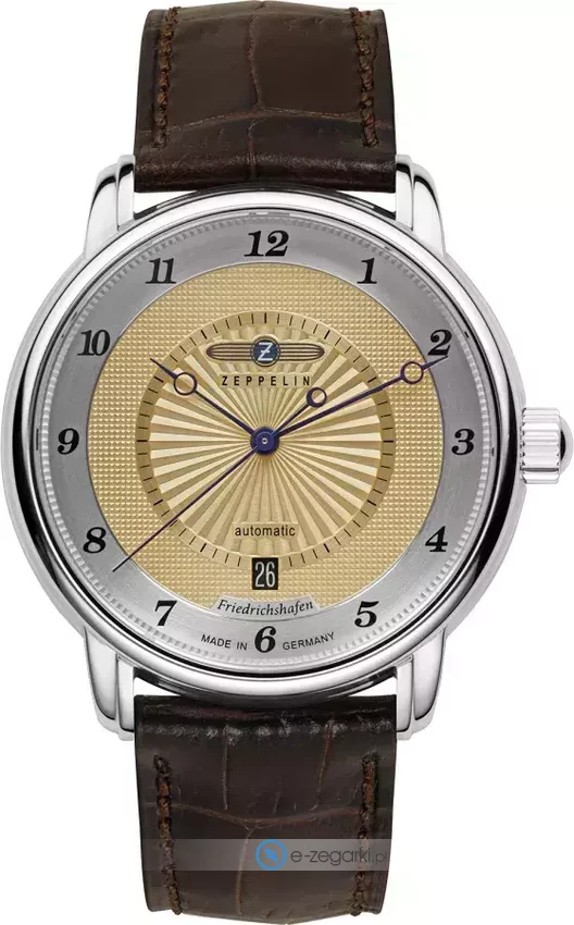 Zeppelin to producent zegarków odznaczający się niemiecką klasą "Made in Germany" oraz bezkompromisową precyzją wykonania. Wszystkie modele montowane są w Niemczech, z użyciem sprawdzonych materiałów takich jaki stal szlachetna, skóra oraz renomowane mechanizmy szwajcarskie i japońskie - co gwarantuje bezawaryjność i długowieczność zegarka. Zegarki Zeppelin oczarowują sumienną konstrukcją, troską o szczegóły i standardowym stylem retro inspirowanym lotnictwem, będąc wręcz pewnym wyborem dla osób, które cenią dokładność oraz światową jakość wykonania