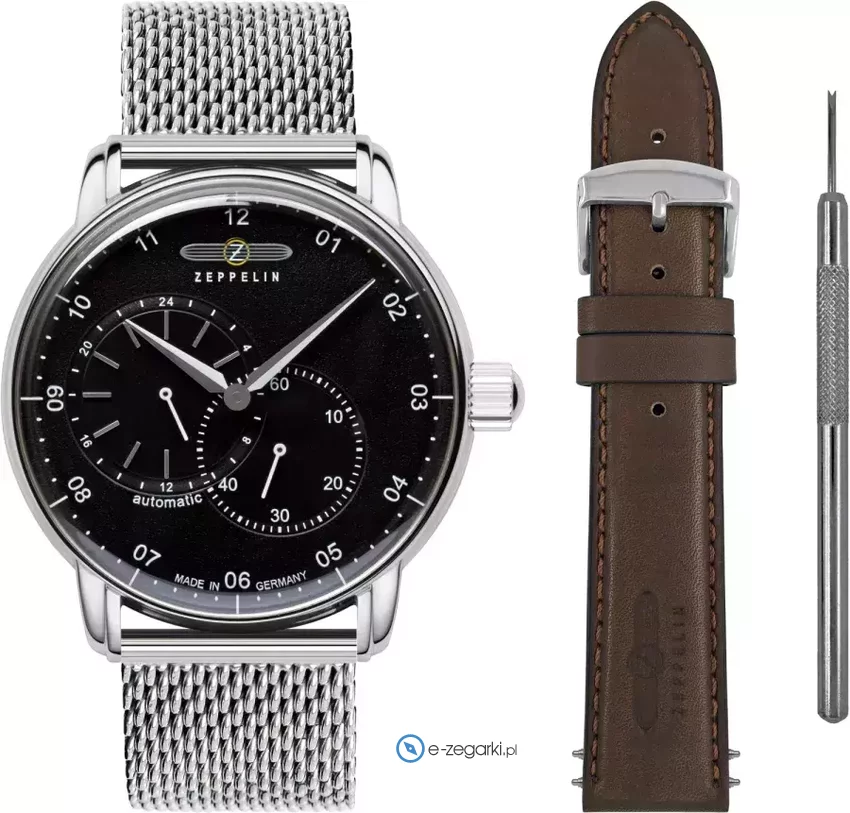Zegarki Zeppelin to synonim niemieckiej jakości "Made in Germany" oraz wyjątkowej dbałości o szczegóły. Każdy model produkowany jest w Niemczech z wykorzystaniem trwałych materiałów, takich jak stal szlachetna i sprawdzone mechanizmy szwajcarskie i japońskie. To gwarancja niezawodności i długowieczności. Zegarki Zeppelin to połączenie solidnej konstrukcji, dbałości o detale i stylu retro inspirowanego lotnictwem. Będą idealnym wyborem dla każdego, kto docenia subtelność oraz wysoką jakość wykonania. W zestawie znajdziesz dodatkowy pasek skórzany, który możesz łatwo wymieniać.