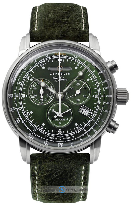 Zegarek męski 8680-4 marki Zeppelin to idealne połączenie funkcjonalności i modnego wzornictwa. Stylu nadaje wysokiej jakości cyferblat w kolorze zielonym. Zegarek ten pokazuje godzinę w formacie analogowym dzięki czemu odczyt jest bardzo łatwy. Koperta w odcieniach koloru srebrnego szeroka jest na 42 mm oraz ma grubość 11 mm - charakteryzuje się okrągłym kształtem.
