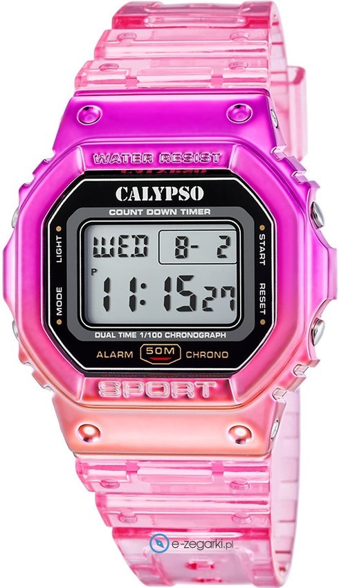 Calypso to marka stawiająca na zegarki dla ludzi, którzy czują się młodo nie tylko wiekiem ale przede wszystkim pogodą ducha. Zegarki tej marki na tle innych brandów na pewno odróżniają się ciekawym wyglądem i stosunkowo niewielką ceną. Projektanci często lubią wprowadzać do oferty nieszablonowe kształty, wyraziste kolory z których tworzone są pomysłowe i niespotykane nigdzie indziej modele zegarków. Wszystkie zegarki Calypso objęte są gwarancją producenta honorowaną w autoryzowanym serwisie.