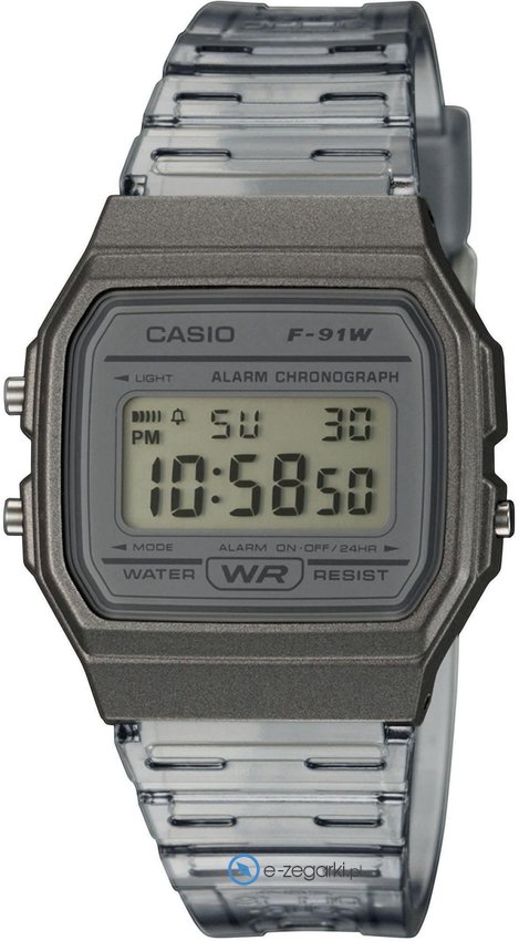 Zegarek unisex F-91WS-8EF marki Casio to idealne połączenie funkcjonalności oraz ciekawego designu. Model ten pochodzi z kolekcji Casio Collection. Styl zapewnia wysokiej klasy tarcza w kolorze szarym. Pokazana metodą cyfrową aktualna godzina jest czytelna i szybka do odczytania. Koperta jest w kolorze szarym szeroka jest na 33.2 mm oraz ma grubość 8.5 mm - w kształcie prostokątnym.