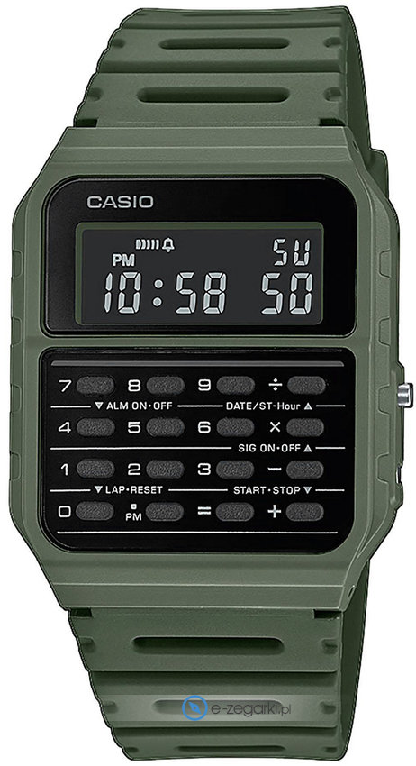 Zasilanie zegarka CA-53WF-3BEF to normalna bateria kwarcowa. Pasek zielonego koloru wykonany jest z wysokiej jakości tworzywa sztucznego.
