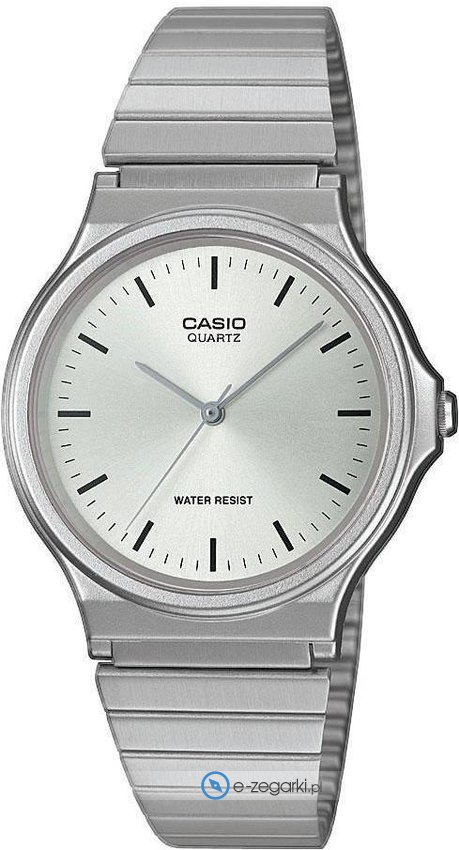 Zegarek unisex MQ-24D-7EEF marki Casio to stylowe połączenie funkcjonalności a także ciekawego designu. Model ten występuje w kolekcji Casio Collection. Aktualna godzina przedstawiona jest w sposób analogowy co intuicyjnie pozwala ją odczytać. Koperta szeroka jest na 34.9 mm oraz ma grubość 7.8 mm.