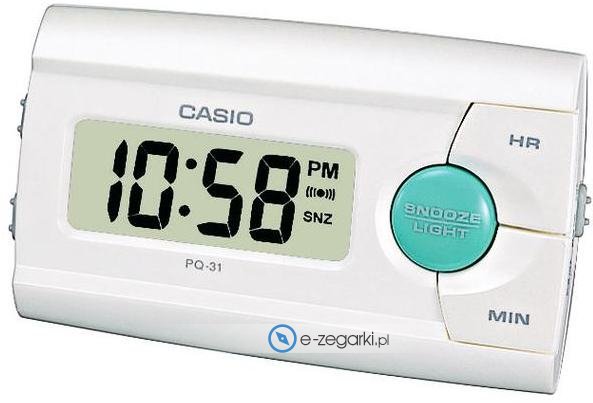 Zegarek unisex PQ-31-7EF marki Casio to dobre połączenie funkcjonalności i ciekawego designu. Model ten pochodzi z kolekcji Casio Wake Up Timer. Zegarek ten pokazuje godzinę w formacie cyfrowym dzięki temu odczyt jest bardzo łatwy. Koperta szeroka jest na 86.59 mm oraz ma grubość 17.8 mm.