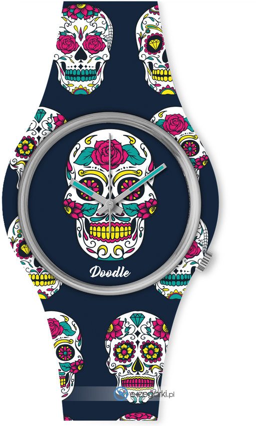 Model unisex DOCA005 marki Doodle z serii Doodle Calaveras Mood. Zegarek ten prezentuje godzinę w formacie analogowym dzięki temu odczyt jest bardzo łatwy. Koperta szeroka jest na 39 mm oraz ma grubość 10 mm - w kształcie okrągłym.