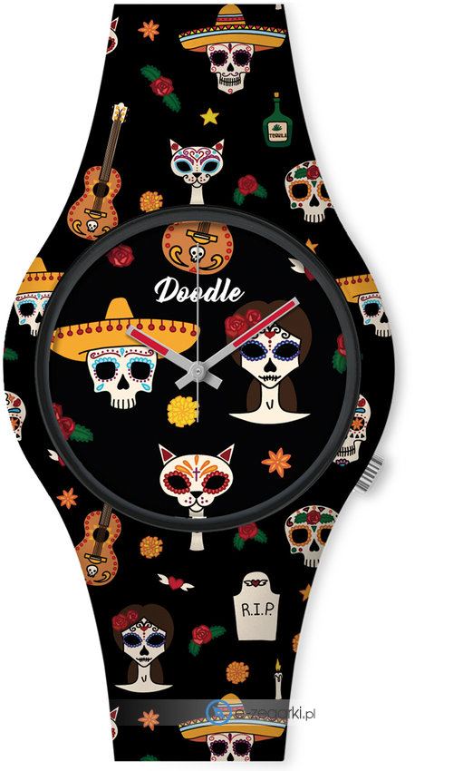 Zegarek DOSK005 marki Doodle to stylowy zegarek naręczny unisex, który jest wyposażony w pomysłowe rozwiązania oraz funkcje. Model ten należy do serii Doodle Calaveras Mood. Pokazana metodą analogową bieżąca godzina jest czytelna i szybka do odczytania. Koperta szeroka jest na 39 mm oraz ma grubość 10 mm - w kształcie okrągłym.