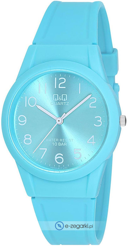 Model VQ50-817 posiada mechanizm zasilany tradycyjną baterią kwarcową. Pasek jest w kolorze niebieskim wykonany jest z wysokiej jakości tworzywa sztucznego.