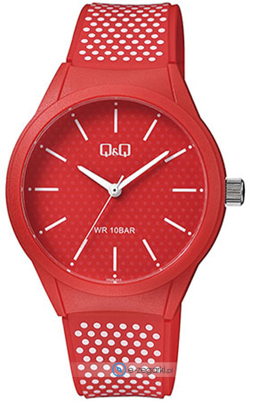 Model VR28-043 posiada mechanizm zasilany klasyczną baterią kwarcową. Pasek koloru czerwonego zrobiony jest z wysokiej jakości tworzywa sztucznego.