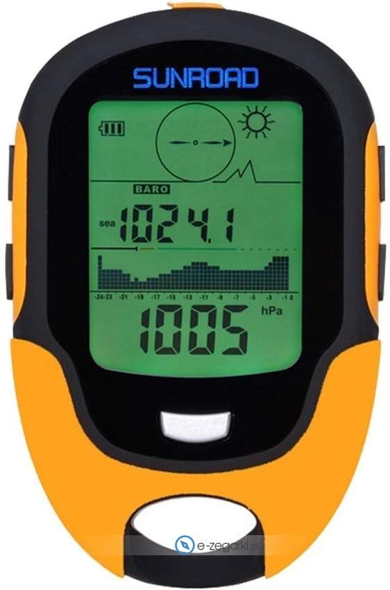 Wielofunkcyjne urządzenie FR500 marki Sunroad zostało zaprojektowane dla każdego, kto kocha chodzić po górach i zdobywać szczyty swoich możliwości! Łączy funkcje wysokościomierza, barometru, termometru, higrometru, kompasu i latarki.